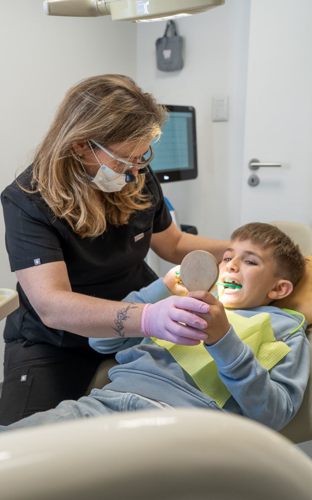 Nuestra odontopediatría de vanguardia combina innovación , cuidado y cariño , usando las tecnologías más modernas para el bienestar de tus hijos Nos enfocamos en la prevención y detección temprana de problemas, generando experiencias positivas que construyen confianza y buenos hábitos.